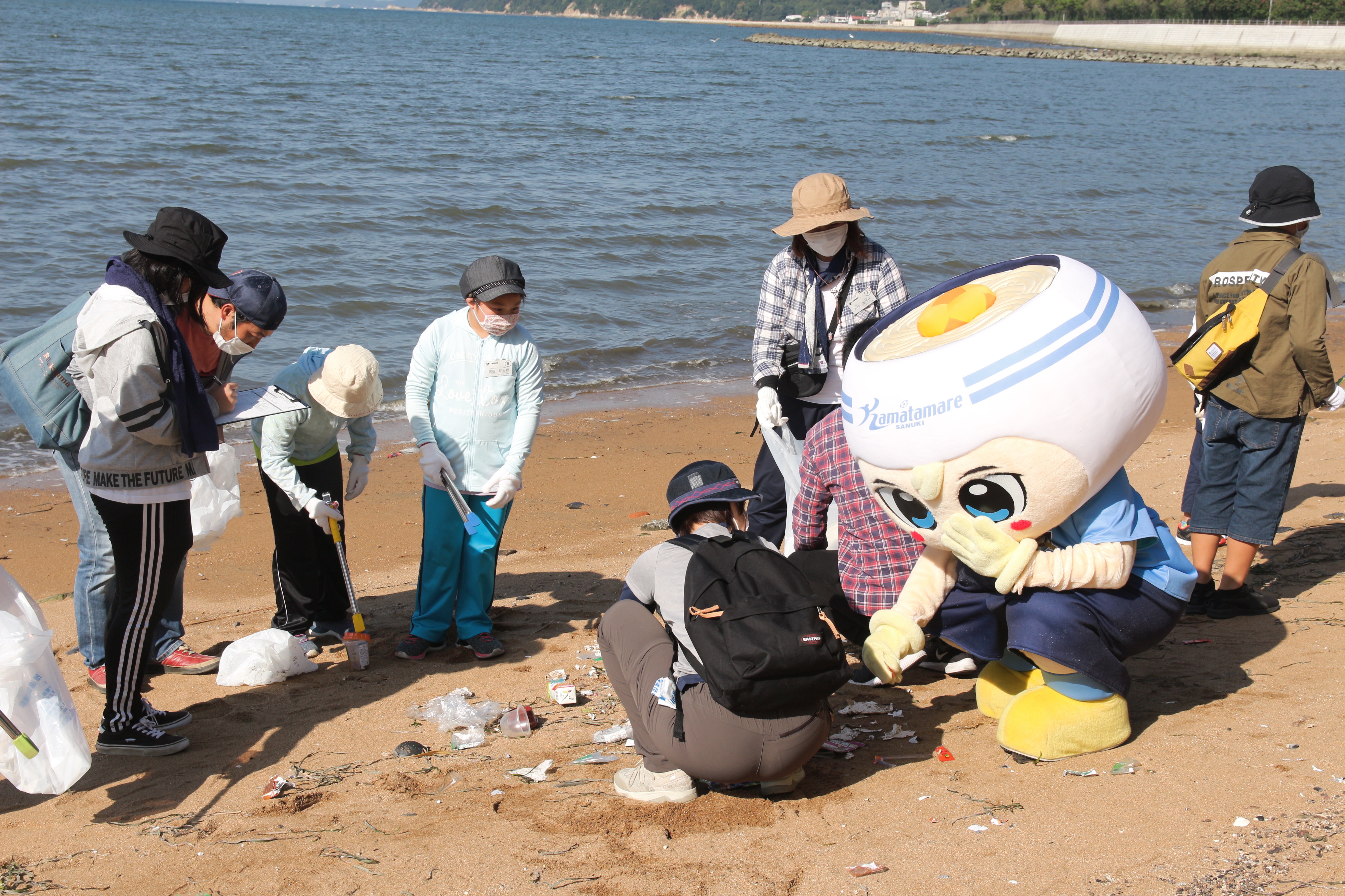 初回は2021年10月2日(土)に開催し、NPO法人アーキペラゴ様、香川県プロサッカーチームのカマタマーレ讃岐様のご協力のもと、社員有志44名が高松市屋島西町の海岸でごみを拾い、ICC(国際海岸クリーンアップ)データシートへの記入・報告を通じて海洋保全への理解・学びを深めました。