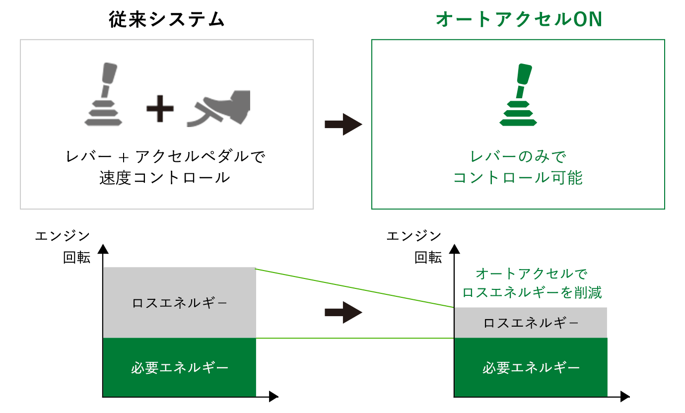 - ※2 従来システムとオートアクセルはスイッチによる切替可能でどちらのシステムも使用できます。