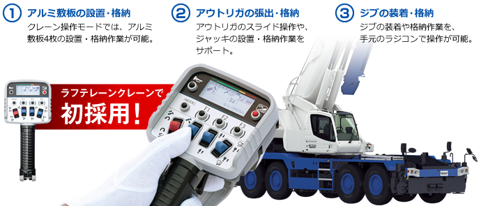 | ジブ長さ (3段フルオートジブ) | 8.4m ~ 17.7m | |