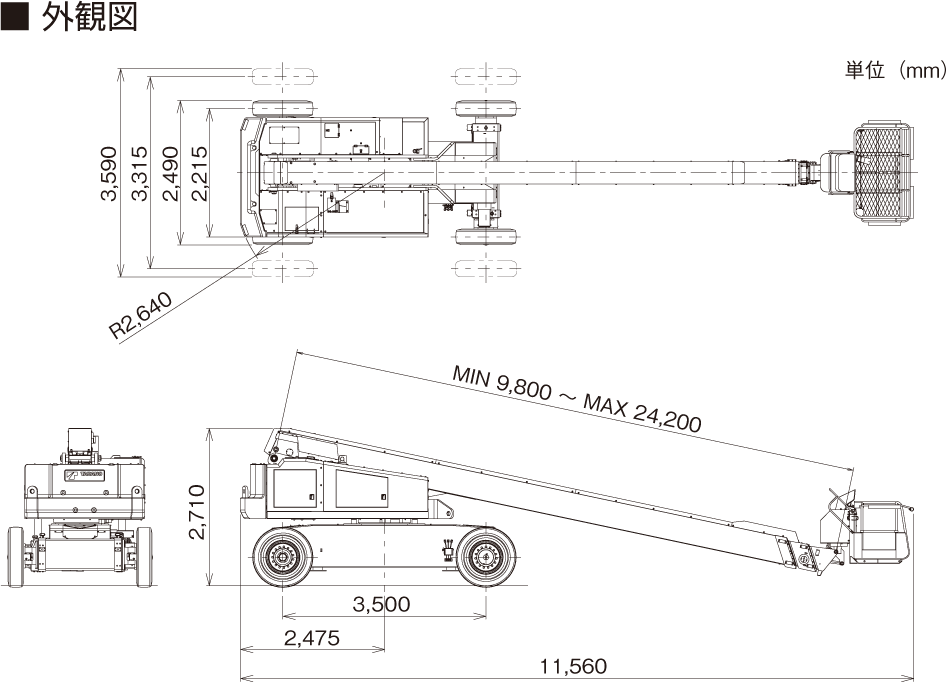 | ブーム長さ | 9.8m ~ 24.2m | |