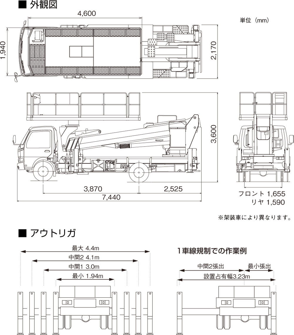 デッキ外寸法 (長さ × 幅 × 手すり高さ) 4.6m × 1.94m × 1.01m